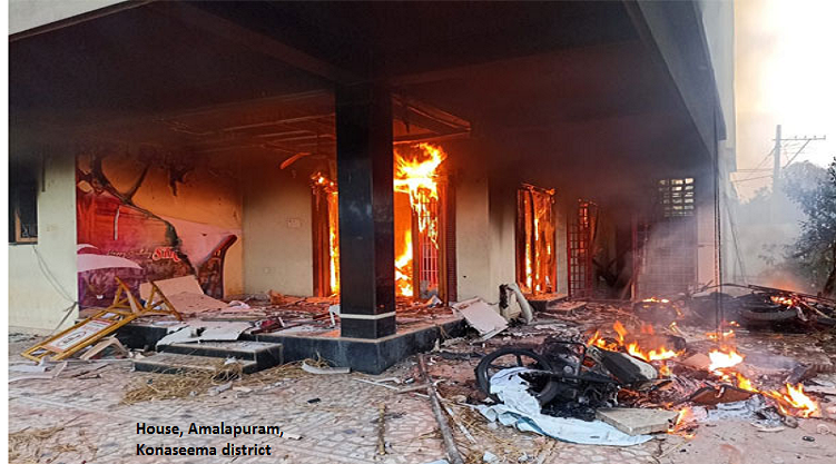 ఏపీ మంత్రి విశ్వరూప్, ఎమ్మెల్యే ఇళ్ళకు నిప్పు పెట్టిన ఆందోళనకారులు