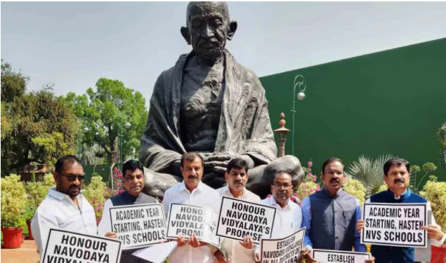 పార్లమెంటు ఆవరణలో టిఆర్ఎస్ ఎంపీలు నిరసనలు