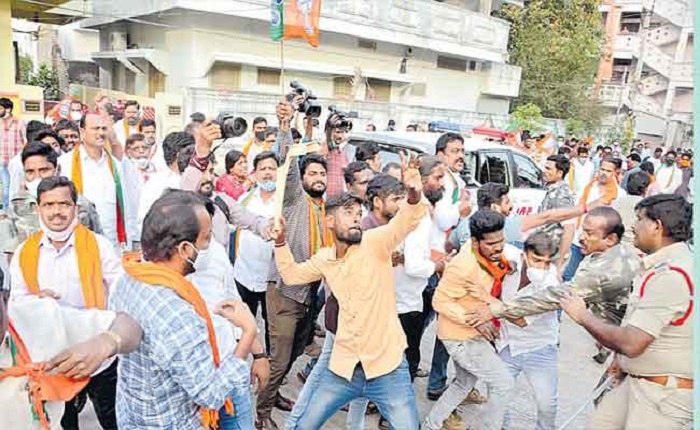 వరంగల్లో టిఆర్ఎస్-బిజెపి కార్యకర్తల దాడులు