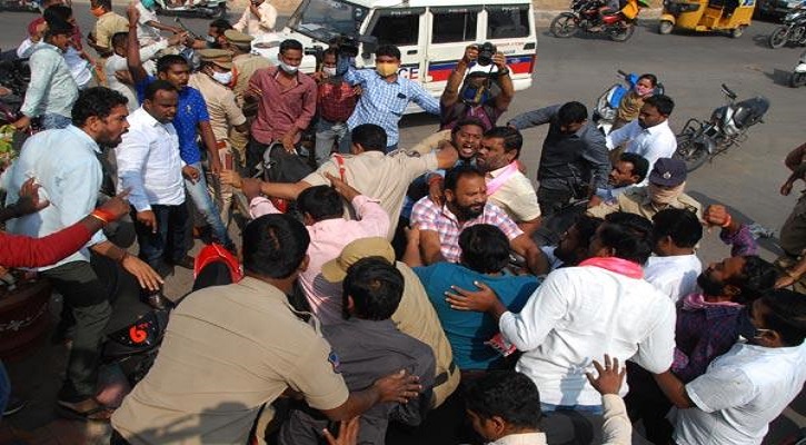 కరీంనగర్లో టిఆర్ఎస్-బిజెపి కార్యకర్తలు కొట్లాట