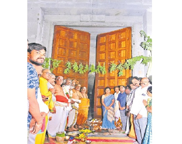 యాదాద్రి గర్భగుడి ప్రధానద్వారం ఏర్పాటు