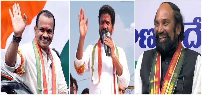 ఉత్తమ్, రేవంత్, కోమటిరెడ్డి విజయం