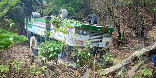 భూపాలపల్లిలో ఆర్టీసీ బస్సు బోల్తా