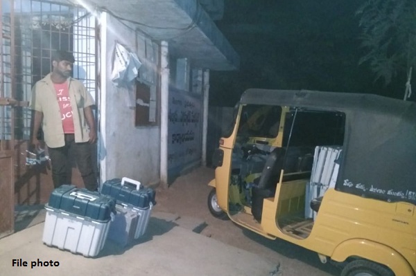 జగిత్యాలలో ఆటోరిక్షాలో ఈవీఎంలు రవాణా!