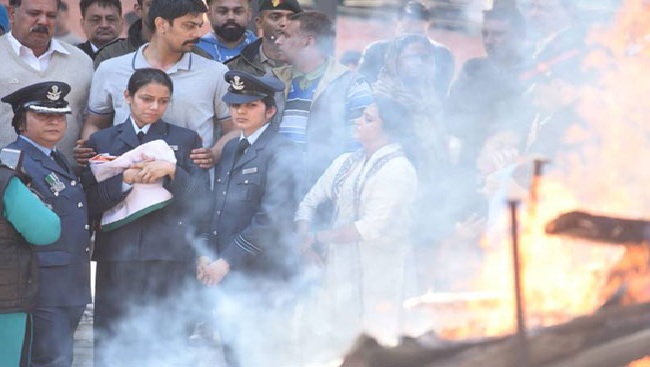 యూనిఫారంలో భర్త అంత్యక్రియలకు హాజరైన భార్య