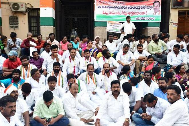 గాంధీ భవన్ వద్ద కాంగ్రెస్ కార్యకర్తల నిరసనలు