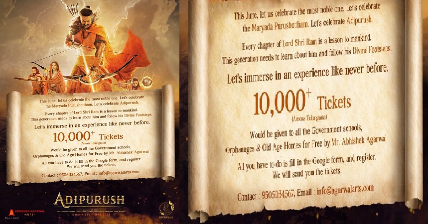 ఆదిపురుష్... ఉచితంగా 10 వేల టికెట్లు పంపిణీ!