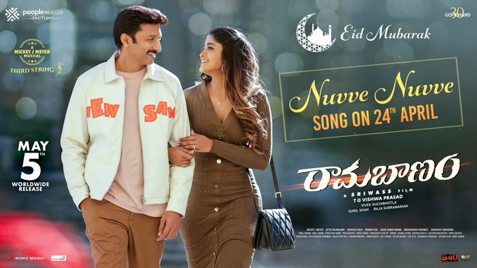 గోపీచంద్ రామబాణం నుంచి మూడో పాట... నువ్వే నువ్వే