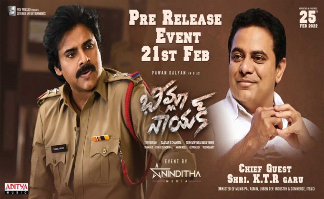 భీమ్లా నాయక్ ప్రీ-రిలీజ్ ఈవెంట్కు కేటీఆర్ ముఖ్య అతిధి